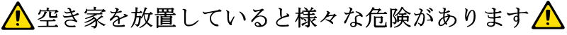 | 長いこと管理が行き届いていない空き家は様々なリスクを抱えています。その被害は建物の所有者だけではなく、近隣住民の方にも及ぶ恐れもあり、場合によっては訴訟問題となるケースもあります。早めのご対応を推進いたします。 | |||